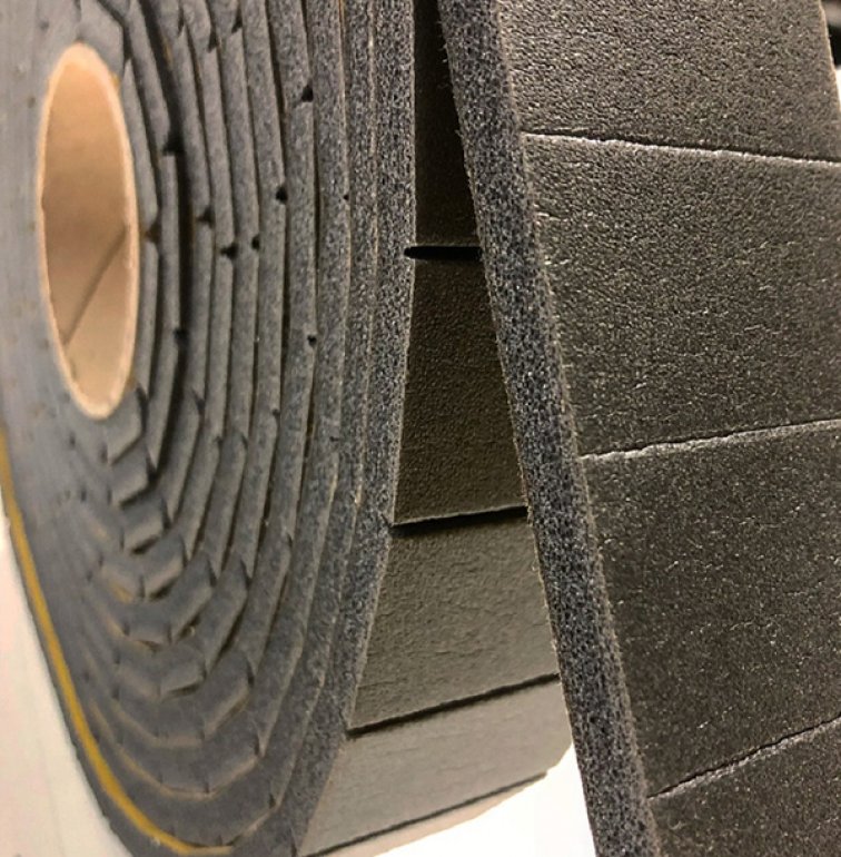 Posiadamy również piankę poliuretanową samoprzylepną używaną także jako pianki dystanosowe do produkcji przyłbic. Pianka PUR występuje w kolorze szarym lub białym.